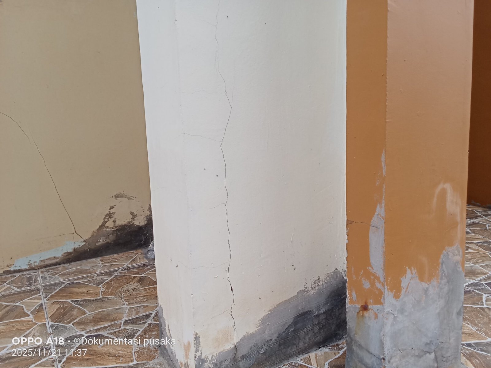 “Saya baru satu tahun disini, iya sempet juga sih kepikiran kok banyak banget dinding yang retak, bahkan bukan saja di dalam mas, di luar juga banyak itu mas yang retak.”ujar RMY.