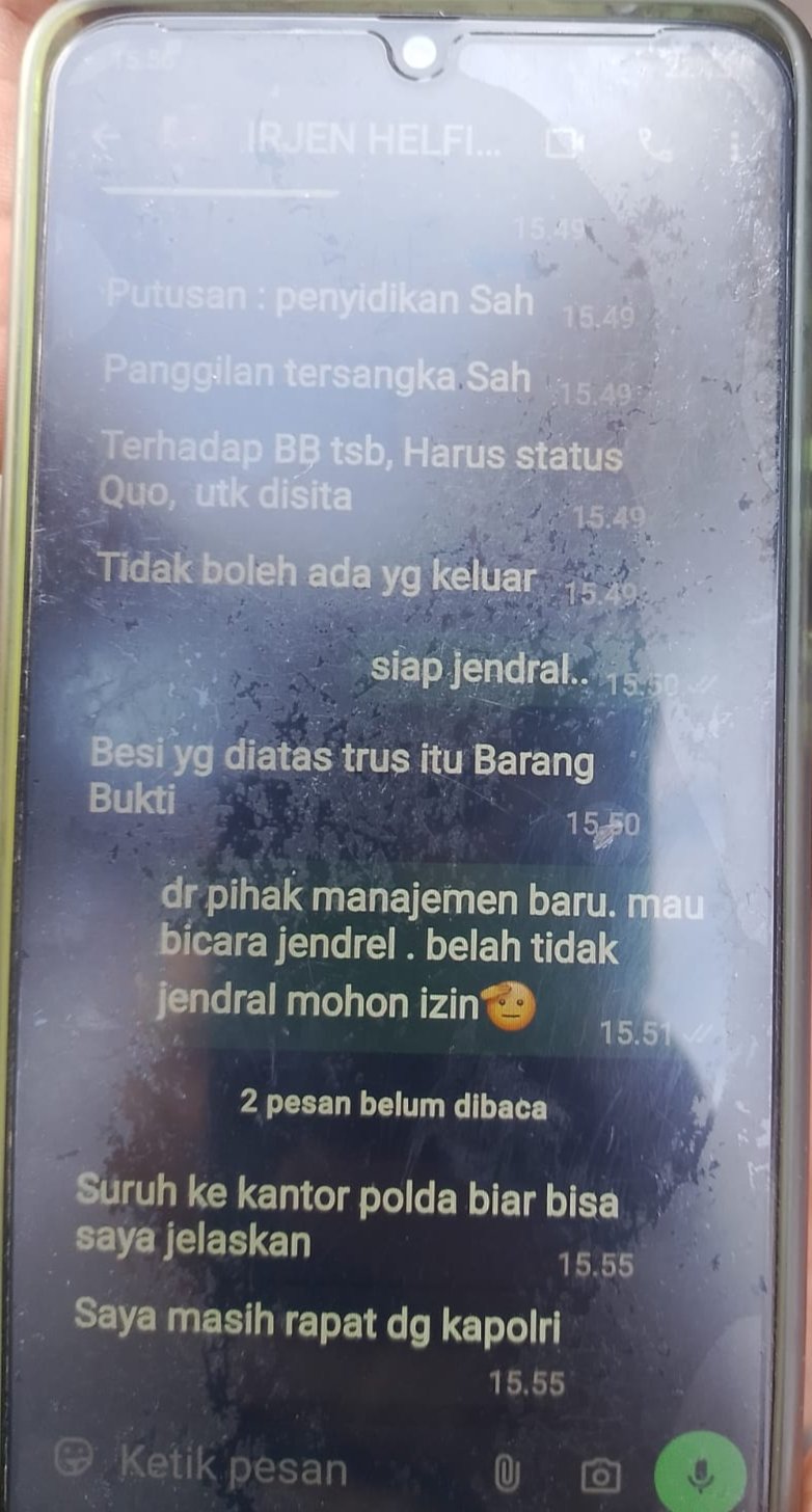 “Putusan : penyidikan sah, panggilan tersangka sah terhadap Barang bukti (BB) tersebut, harus status Quo untuk disita.tidak ada yang boleh keluar, besi yang diatas terus itu barang bukti.