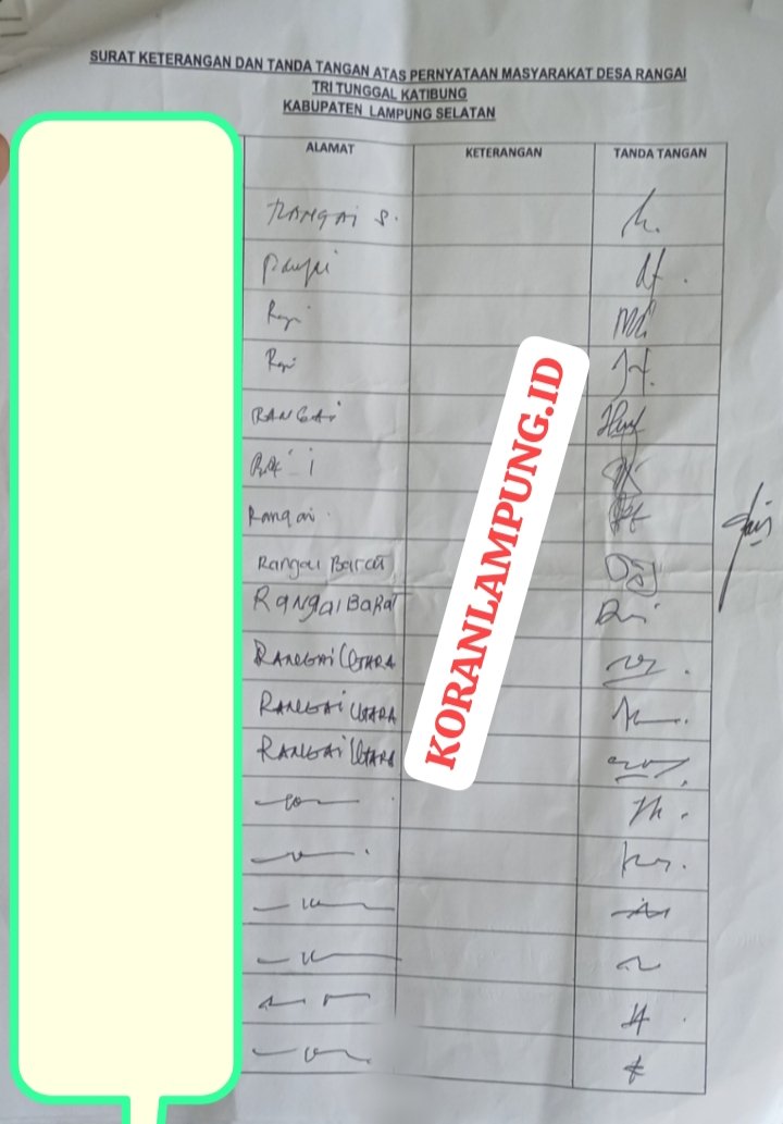 Kemudian, Ahmadi juga menyebutkan ada sebanyak 100 orang warga masyarakat sudah menandatangani surat pernyataan secara tertulis, menurut mereka pengelolaan Anggaran di Desa Rangai Tritunggal tidak sesuai peruntukannya.